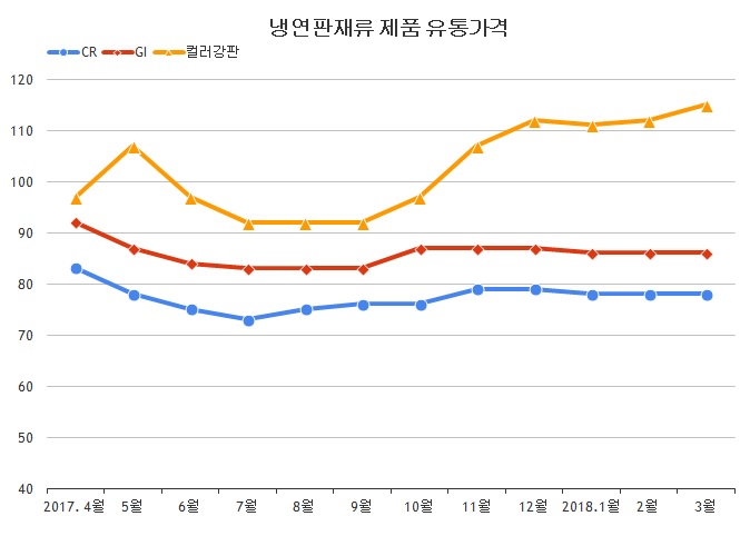 뿐만 아니라 포스코에서 냉연강판(CR)과 산세강판(PO)는 3월 중순 이후부터 가격이 인상된 물량이 유통시장 내에 들어온다. 이에 가격 인상 분위기는 서서히 만들어질 것으로 예상되는 만큼 가격 인상 시점은 예상보다 빠를 수도 있다.