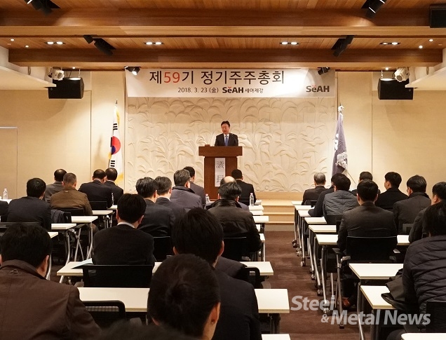 이날 의장을 맡은 세아제강 이휘령 부회장은 “지난해 강관 사업부문의 한 축인 미국 에너지용 시장의 개선과 함께 내수시장의 주요산업인 건설경기의 회복세에 힘입어 경영실적이 개선됐다”며 “하지만 각국 보호무역주의 강화추세와 함께 원재료 가격의 상승, 글로벌 금리 인상기조, OPEC 감산 연장 합의 등 대내외 이슈들이 상존하며 불확실성이 커졌던 한 해이기도 했다”고 말했다.