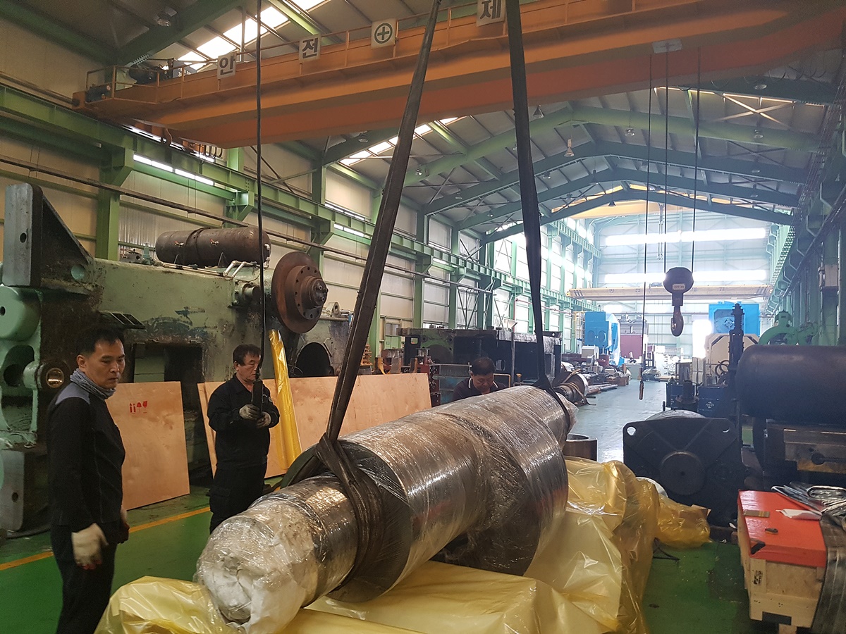 태국과 인도로 나갈 단조프레스기 부품 포장하느라 바쁜 분위기