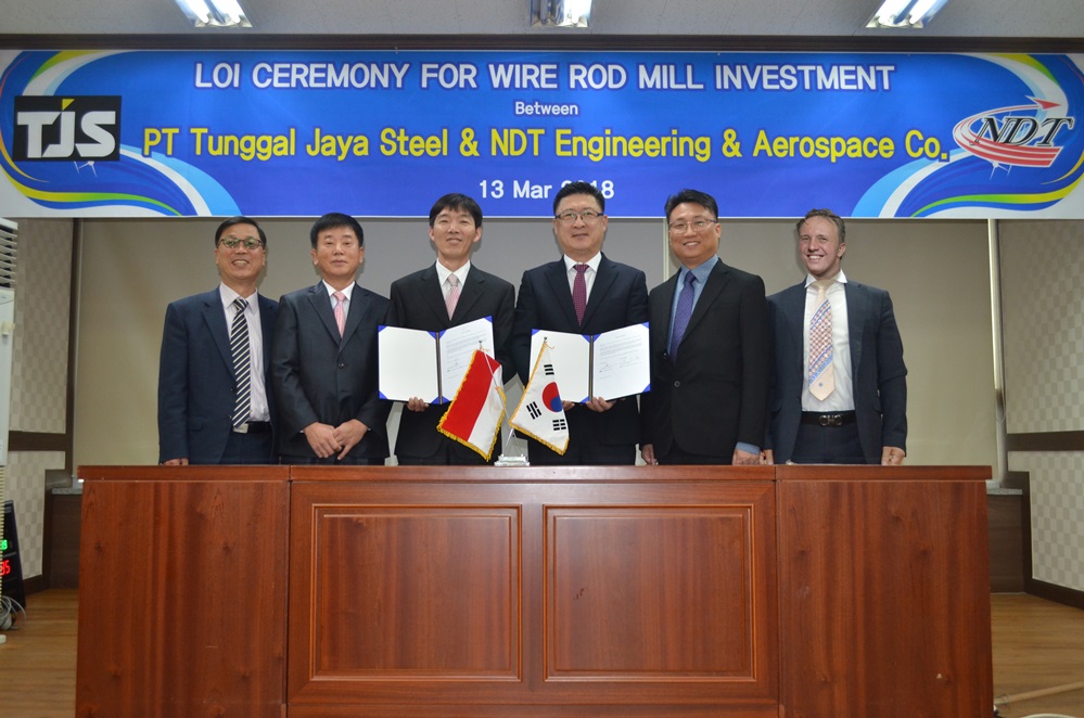 회사 관계자에 따르면 지난 3월 13일 경상남도 창원시 소재 엔디티엔지니어링은 인도네시아 수라바야 소재 유명 철근, 환봉, 선재 등 봉형강 제조사인 PT Tunggal Jaya Steel(TJS)과 압연라인 개조공사에 대한 LOI(Letter Of Intent)를 체결했다.