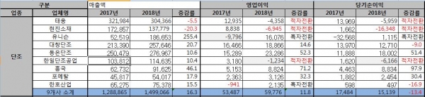 매출액·영업이익은 증가, 당기순이익은 감소...태웅·한일단조·현진소재는 ‘적자 전환’
