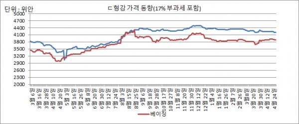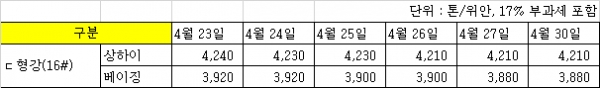 중국 ㄷ형강 내수가격이 보합을 보이고 있다. 중국 현지 소식통에 따르면 4월 30일 중국 상하이 내수 ㄷ형강 가격(16# 기준)은 4,210위안이다. 베이징 내수 ㄷ형강 가격은 톤당 3,880위안 수준을 기록했다. 안종호 기자 jhahn@snmnews.com 다른 기사 보기 관련기사 (형강) ㄷ형강, 공급과잉 지속 ㄷ형강, 3월 수출 감소·수입 증가 4월 4주차 中 ㄷ형강, 내수價 보합 4월 3주차 中 ㄷ형강, 내수價 보합 ㄱ형강, 2월 생산·판매 ‘부진’ (형강) ㄷ형강, 수요 부진에도 수입 급증 (주간시장동향-형강) H형강 유통價, 바닥이 어디? 2월 경량형강, 생산·판매 증가 5월 2주차 中 ㄷ형강, 내수價 보합 5월 3주차 中 ㄷ형강, 내수價 보합 5월 4주차 中 ㄷ형강, 내수價 보합 5월 5주차 中 ㄷ형강, 내수價 보합 저작권자 © 철강금속신문 무단전재 및 재배포 금지