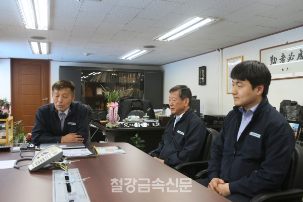 10일 오전 본지 송재봉 사장(발행인 겸 편집인)은 서울 성동구에 위치한 으뜸철강 본사를 예방해 황상돈 대표를 만났으며, 특수강 분야를 비롯한 철강업계의 주요 이슈와 으뜸철강 업황에 대해 환담을 나눴다.