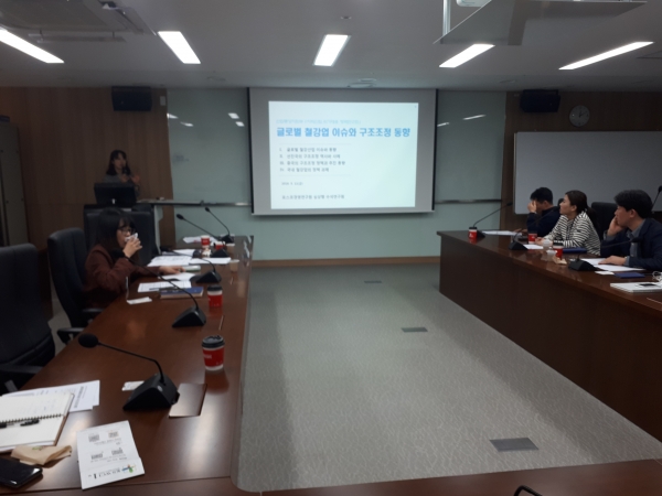 이번 회의는 2번째로 철강산업이 대상이 되었으며 전문가 2인의 발표에 이어 참가자들 간에 격의 없는 질의응답이 오갔다.