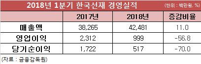 한국선재(대표 이명호, 이제훈)은 1분기 연결기준 영업이익이 9억9,900만원으로 전년동기대비 56.8% 감소했다고 공시했다.