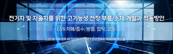 한국미래기술교육연구원(http://www.kecft.or.kr, 대표 박희정)은 오는 6월 27일 서울 여의도 전경련회관 로즈홀에서 '전기차 및 자율차를 위한 고기능성 전장 부품/소재 개발과 적용방안 세미나 - EMI 차폐/흡수. 방열, 접착. 코팅'를 개최한다고 밝혔다.