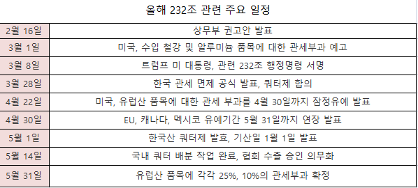 ■ 2월 16일 美 상무부, 24% 관세 부과 포함한 232조 권고안 발표