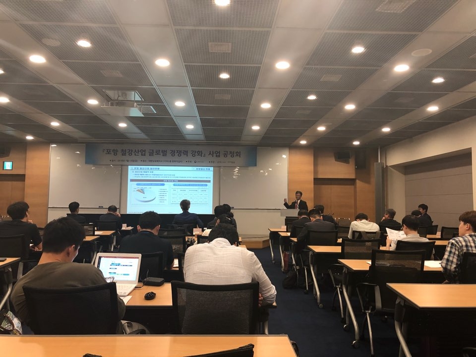 경상북도는 대한상공회의소 중회의실에서 포항시와 공동으로 기획한 '포항 철강산업 글로벌 경쟁력 강화사업'에 대한 공청회에서 김현종 윕스 센터장은 '포항 철강산업 글로벌 경쟁력 강화사업 기획'에 대해 발표했다.