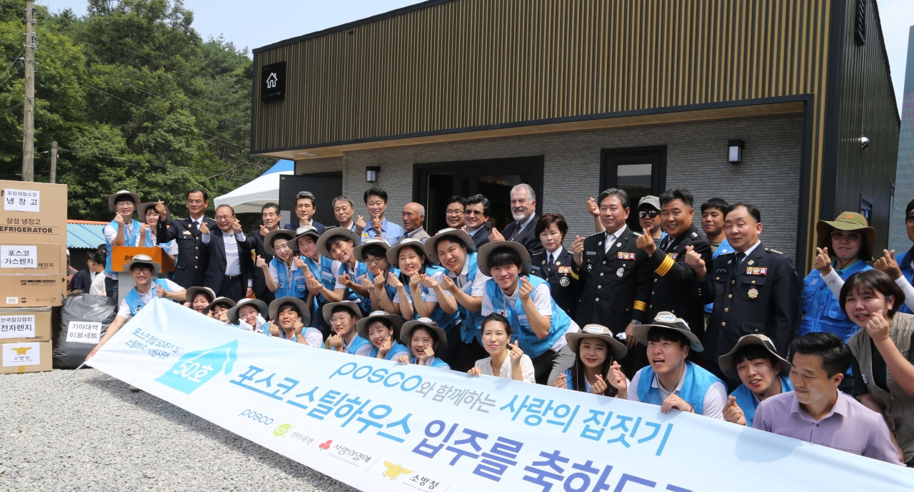 포스코가 화재피해∙저소득층 가정에 50번째 스틸하우스를 기부했다.
