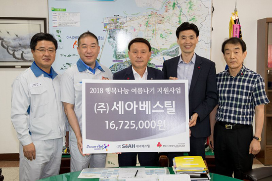 한편 세아베스틸의 여름나기 성품 후원은 올해로 7년째 지속되고 있으며, 매년 여름 물품을 관내 저소득가정에 지원해 지역사회의 귀감이 되고 있다.