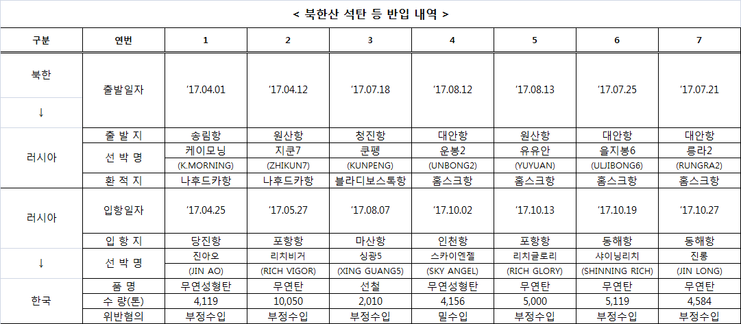 또 북한산 석탄 반입 사실이 확인된 수입업자 등의 과거 수입자료를 검토해 북한산 석탄 및 선철을 반입한 사실을 추가로 확인했다.