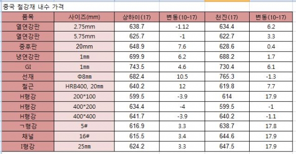 지난주부터 상승세를 보인 중국의 철강재 내수가격이 이번 주에도 전반적인 상승세가 지속됐다. 특히, 계절적인 비수기에도 불구하고, 천진의 건설용 철강제품 가격이 큰 폭의 상승세를 보였으며, 상하이에서도 H형강을 제외하고는 건설용 제품 가격의 상승이 두드러졌다.