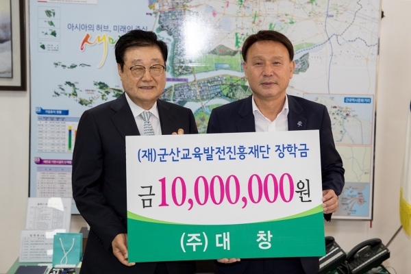전라북도 군산 출신의 조시영 대창 회장이 지난 28일 고향인 군산을 방문해 군산교육발전진흥재단에 장학금 1천만원을 기탁했다.