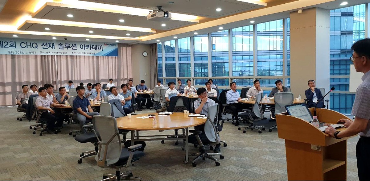 최근 송도 포스코글로벌R&D센터에서 열린 ‘제2회 CHQ 선재 솔루션 아카데미’는 이러한 노력의 일환으로 마련됐고 세아특수강, 태양금속공업 등 11개 고객사들이 참석해 CHQ 선재 내수시장의 발전과 수출 경쟁력 확보 방안에 대해 논의도 있었다.