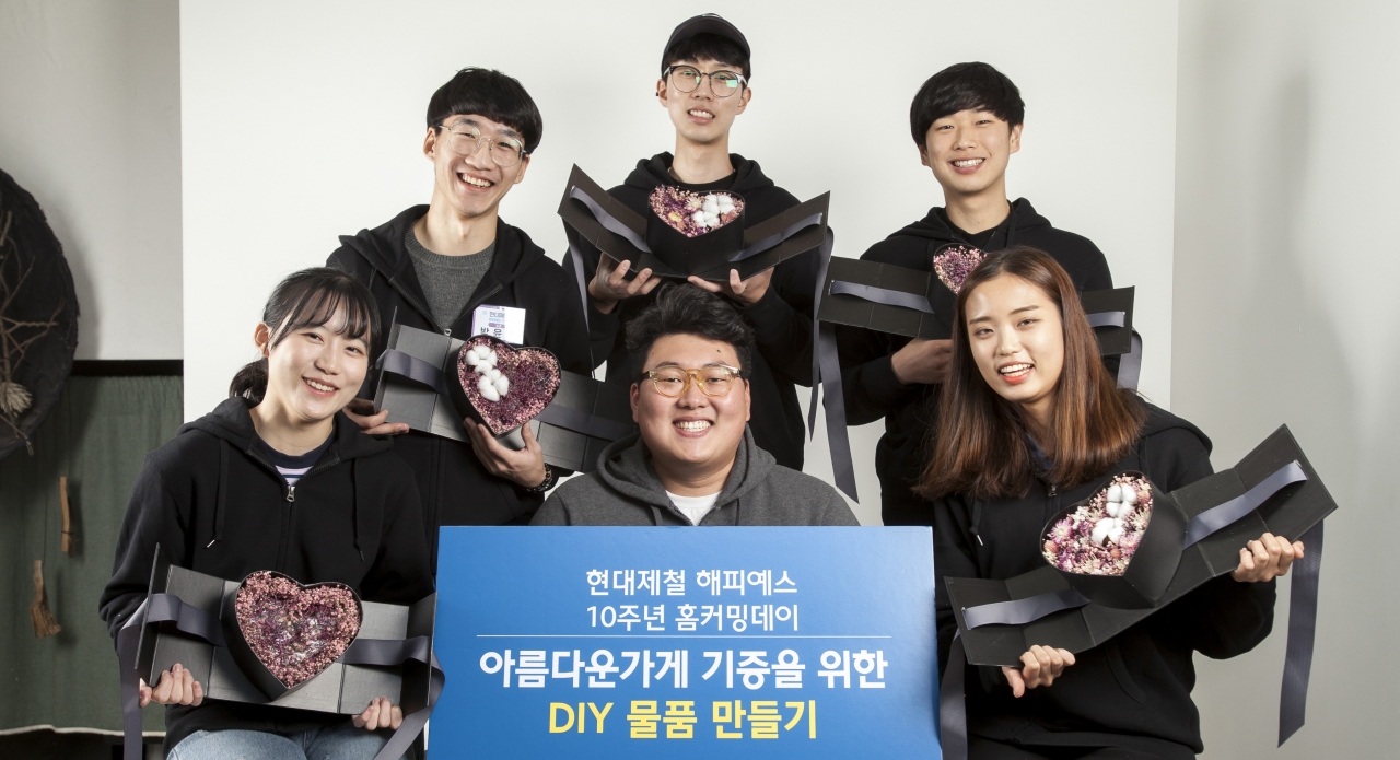 현대제철은 이렇게 만들어진 작품들을 회사의 사업장이 위치한 순천의 '아름다운 가게'에 기부, 해피예스 단원들의 공방 체험이 아름다운 가게의 판매 수익으로 창출될 수 있게 했다.