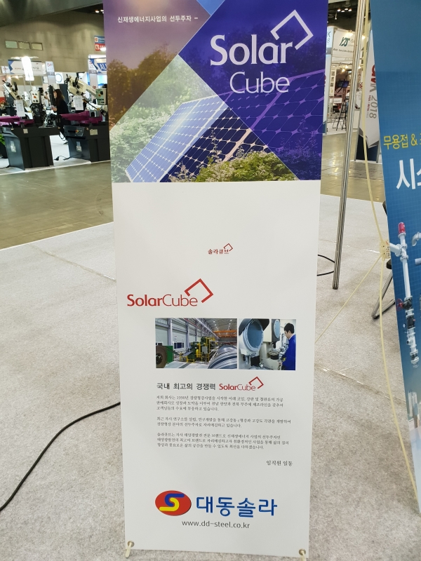 대동솔라(대표 천영종)가 ‘국제철강 및 비철금속산업전(SMK2018)’ 무인부스에서 자사 홍보에 나섰다.
