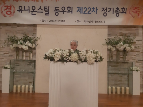 관련기사 유니온스틸 동우회 2017 정기총회 열린다 (유니온스틸 동우회) 이모저모 유니온스틸 동우회 2017 송년모임 가져 (SMK2018) 유니온스틸동우회 이흥수 회장 일행, 포스코·현대제철 등 부스 관람① 유니온스틸 동우회, 선 후배간 송년모임 가져 [현장포토] 유니온스틸 동우회, '제28차 정기총회'