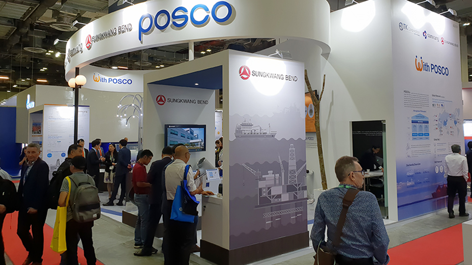 올해 OSEA에 처음 참가한 포스코는 LNG수요 증가에 발맞춰 광폭 9% Ni 패널을 적용한 LNG 저장탱크와 고망간강 적용 연료탱크가 탑재된 LNG 연료추진선 등 에너지조선용 주요 월드프리미엄제품을 전시한다. 고강도 후판이 적용된 대구경 후육 용접강관과 강관 이음부품인 피팅(Fitting) 등 고객사 제품도 함께 선보인다.