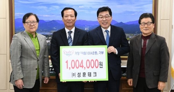 파형강관 제조업체 성훈테크(대표 김득철)은 지난 28일 거창군청을 방문해 아림1004운동으로 100만4,000원을 기부했다.