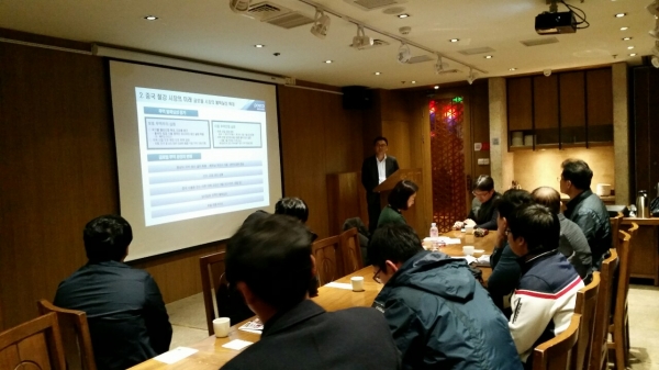 이날 시찰단 관계자들의 중국 철강산업을 이해하는데 도움을 주기 위해 마련된 주제발표 자리에서 박민규 과장은 생산능력 감축 등 2018년 중국 철강산업 주요 이슈, 철강 생산 증가, 수출과 수입량 감소, 유통재고 급감 등 중국의 2018년 상반기 경과 및 하반기 전망, 수요 및 공급 밸런스 분석, 2007~2017년 철강가격 및 이익 추이 분석, 보무강철, 하북강철, 사강집단, 안산강철, 수도강철 등 중국 철강사들의 대형화 추진방안, 보호무역 주의에 따른 글로벌 시장의 불확실성, Ouyeel, Banksteel, Zhaogang 등 중국 철강사들의 전자상거래 확대 등에 대한 강의가 이뤄졌다.