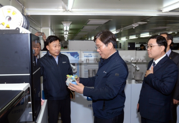 성윤모 산업통상자원부 장관은 4일 창원국가산업단지 내에 위치한 스마트공장 도입기업인 대건테크를 방문해 공장 가동 현장을 살펴보고 업계 의견을 청취했다.