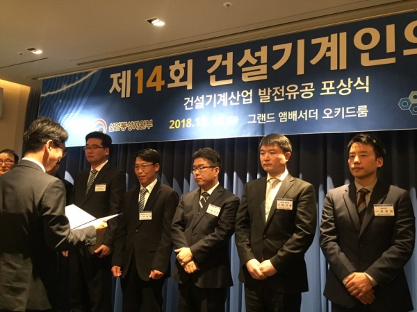 이와 함께 협회장 표창에는 두산인프라코어 김영재 기장, 제트에프서비스코리아 김일용 부장, 볼보그룹코리아 지광석 부장, 이튼인더스트리즈 김성용 부장, 현대건설기계 이준호 기사, 대모엔지니어링 함우종 차장, 테스크 박은용 이사, 한울에이치앤피이 박문기 이사, 원우이엔지 김복암 소장, 코멕스전자 이율복 과장, 상전정공 송인석 팀장이 수상했다.