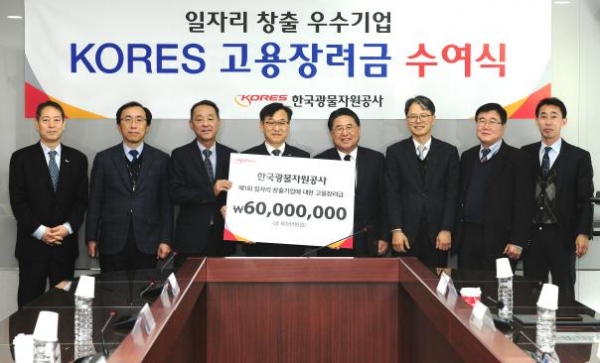 한국광물자원공사(사장직무대행 남윤환)는 최근 본사에서 올해 일자리 창출에 기여한 6개 광산에 고용 장려금 6,000만원을 전달했다.
