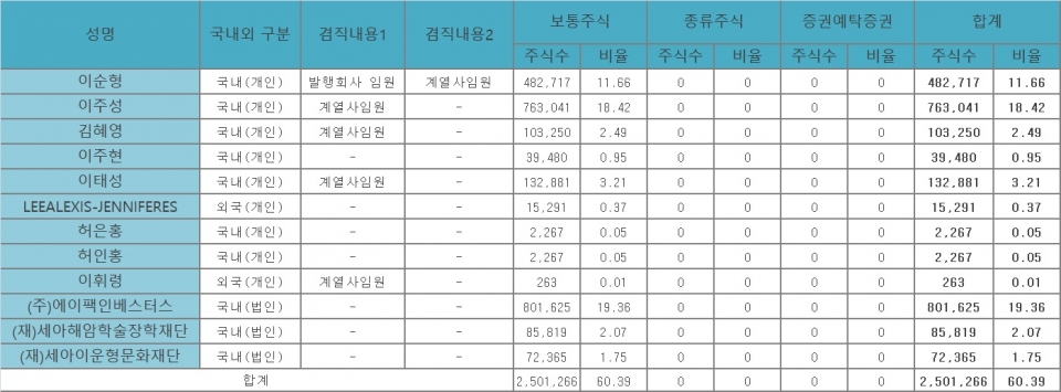 (세아제강지주) 최대주주 등 소유 주식 현황(총괄현황)