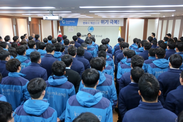이와 함께 그는 "불황을 극복하는 열쇠는 외부에 있는 것이 아니라 임직원 한 명의 마음가짐에 있으며 위기를 기회로 만들기 위해 임직원 모두 자기 계발과 전문성을 확대해야 한다"며 "어려운 시기일수록 위축되지 말고 더욱 자신감을 갖고 당당하게 자기의 역할을 다할 때 위기는 극복될 수 있다"고 격려했다.