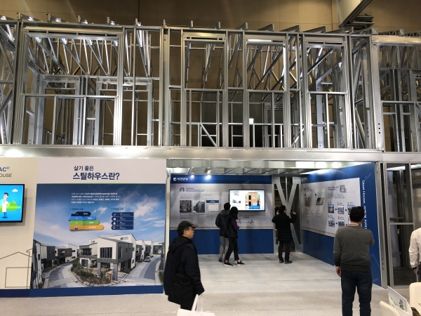 한국철강협회(회장 최정우)는 20일 일산 킨텍스에서 열린 '2019 코리아빌드'에서 고강도 스틸하우스를 선보였다. 이날 행사에는 지난해 '2018 스틸하우스 건축대전'의 시상식도 함께 개최했다.