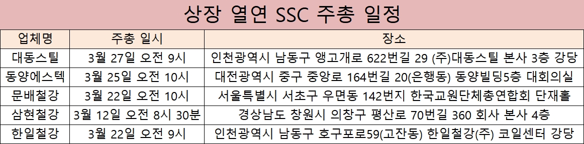 열연 SSC 상장사, ‘3월 하순 주총 집중’