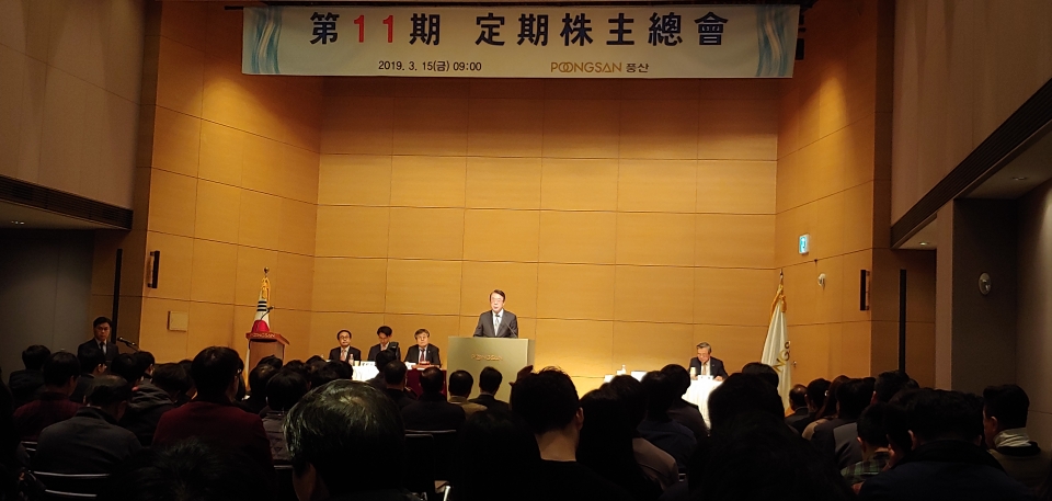 풍산은 15일 오전 서울 충정로 사옥 대강당에서 진행된 제11기 주주총회에서 재무제표 승인, 정광 일부 변경, 이사 선임, 이사 보수한도 승인 등의 안건을 처리했다.