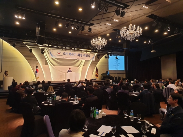 대한방화문협회가 19일 제6기 백은기 회장 취임식을 개최했다. 이날 백은기 회장은 취임사를 통해 회원사들의 목소리를 듣고 소통을 강화하겠다는 의지를 보였다.