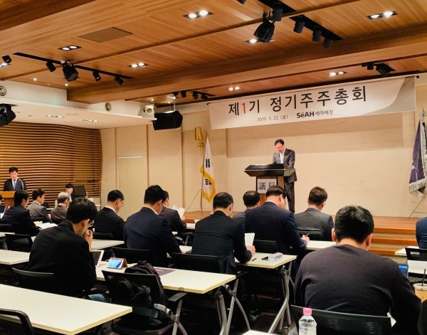 세아제강은 22일 오전 10시 서울특별시 마포구 성암로에 위치한 중소기업DMC타워 3층 대회의실에서 제1기 정기주주총회를 개최했다. 주요 안건으로는 지난해 재무제표 및 연결재무제표 승인의 건과 사내 이사 승인의 건을 통과시켰다. 사내이사로는 이휘령 세아제강 부회장을 재선임과 김석일 세아제강 상무를 신규 선임했다.