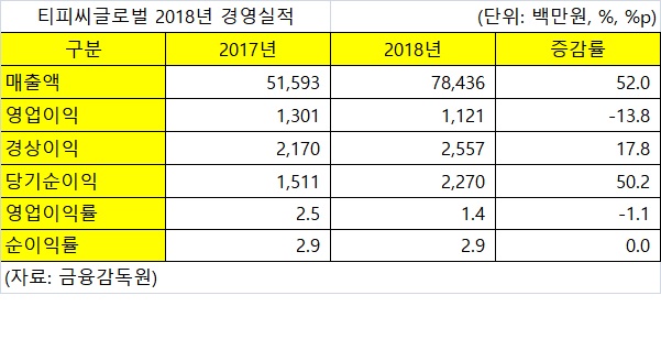 티피씨글로벌, 지난해 매출액 784억 기록 전년대비 52% 증가