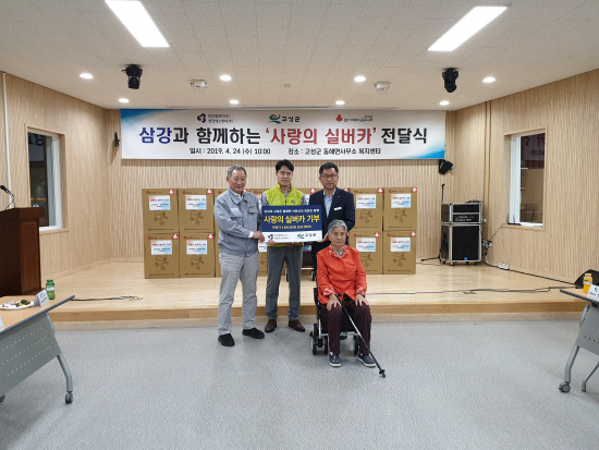 경남 고성 삼강엠앤티, 삼강에스앤씨 띠앗 봉사단(단장 송상호)은 24일 동해면복지회관에서 사랑의 실버카 전달식을 가졌다.