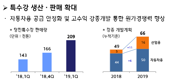 특히 특수강은 자동차용 공급 안정화를 통해 판매를 확대할 계획이다. 고수익 강종개발을 통해 원가 경쟁력을 향상 할 예정이다.