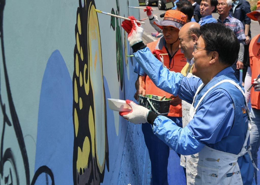 최정우 회장은 글로벌 볼런티어 위크 첫날인 지난 24일 광양제철소 인근 진상면 섬거마을에서 10개 재능봉사단원들과 함께 벽화 그리기, 독거노인 집안 도배 등 다양한 봉사활동에 참여했고 광양에서 활발한 재능봉사를 펼치고 인기가 많은 봉사단 중 하나인 농기계수리재능봉사단의 활동 현장을 방문해 임직원들을 격려했다.
