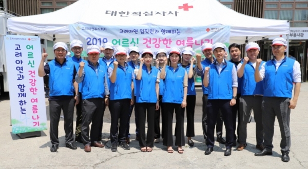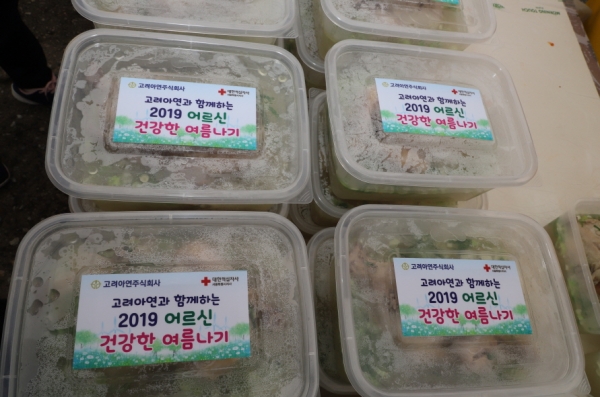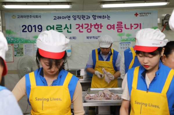 고려아연은 7월 4일 대한적십자사 북부적십자봉사관에서 ‘어르신 건강한 여름나기, 삼계탕 나눔’를 열고 중랑구·노원구·성북구 취약계층 150세대에게 삼계탕과 겉절이 김치, 과일 등을 전달했다.