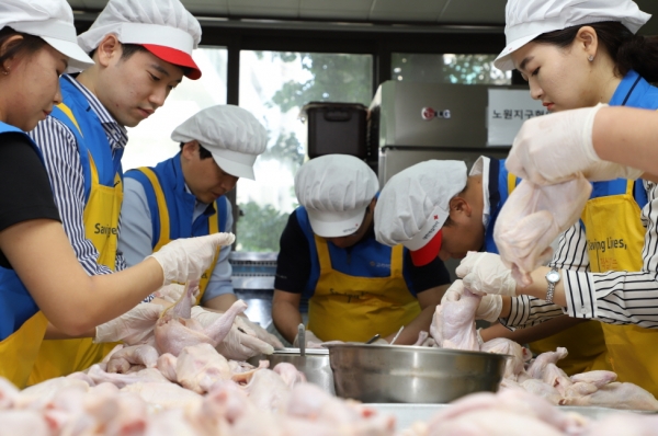 봉사자들은 더운 날씨에도 결연세대에게 건강한 음식이 전달되길 바라며 아침부터 점심까지 3시간여 삼계탕과 양념 만들기, 포장, 배달 등을 진행했으며 행사 후에는 각자 업무에 복귀했다.
