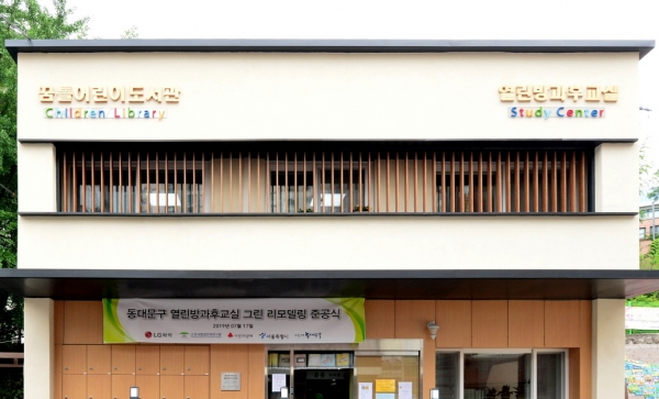 LG화학은 지난해 10월부터 동대문구 ‘열린 방과후 교실’과 성동구 ‘금호 청소년 독서실’을 사업 지원 대상으로 선정하고, 친환경 건축자재를 활용한 건물 외내부 단열재 및 창호 교체, 옥상 태양광 패널 설치 등을 진행했다.