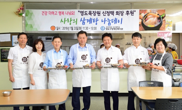 신정택 회장이 운영하고 있는 영도 목장원에서 지난 23일 지역 어르신과 소외계층 3,000명을 대상으로 '2019년 사랑의 삼계탕 나눔데이'행사가 열렸다. 관내복지관 8개소에서 동시에 진행된 이번 행사는 폭염에 취약한 저소득 계층에게 여름철 대표 보양식인 삼계탕을 대접하여 무더위를 식히고 건강을 기원하는 의미로 마련됐다.