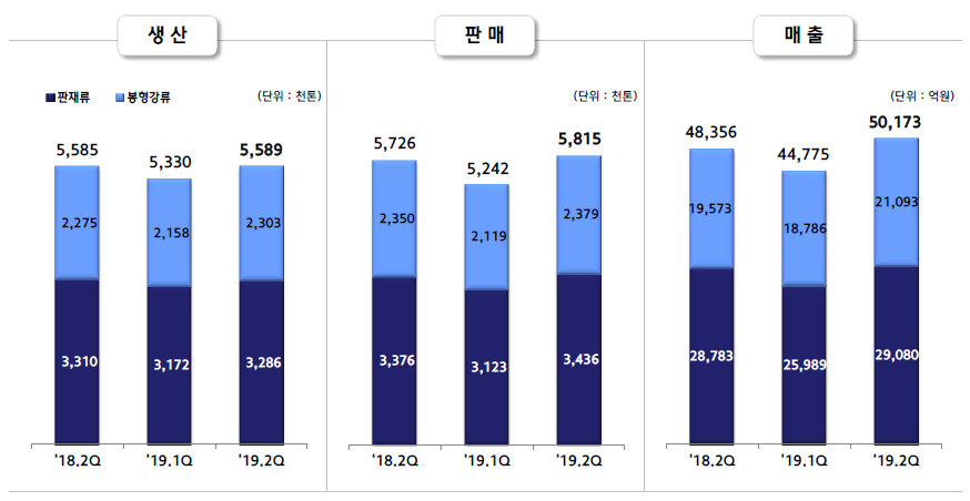 철근 및 후판 수요에 적극 대응하는 판매 전략을 통해 생산과 판매가 증가했고 글로벌 차 강판 판매 증대, 봉형강 판매 가격 상승 등으로 매출액은 증가했다.