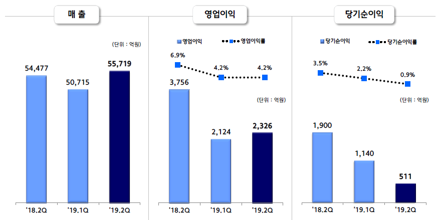 그러나 원재료 가격 상승 부담과 중국 자동차 시장 부진 등의 영향으로 영업이익은 전년 동기 대비 38.1%나 감소했다.