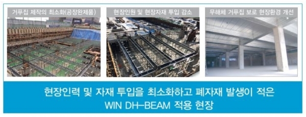 이밖에 DH-BEAM은 공장 성형제작으로 현장 내 소음, 분진 발생이 적어 쾌적한 작업이 가능한 친환경 제품이다. 이와 함께 건설 폐자재를 최소화하고, CO2 배출을 절감해 저탄소 친환경 공법을 실현한다.