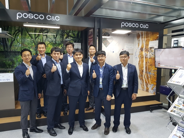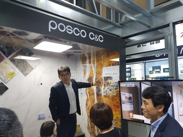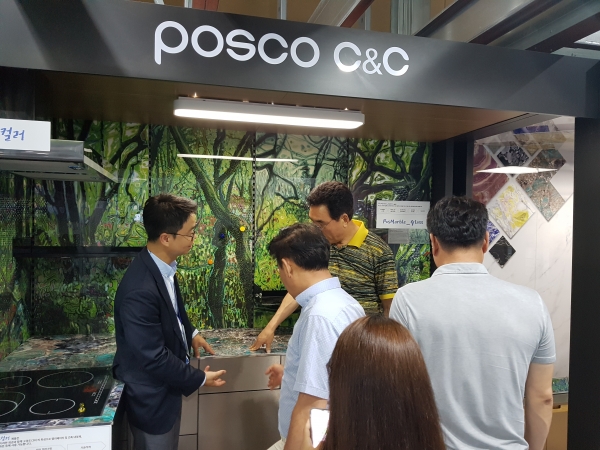 냉장고 식기세척기 오븐기 등 고급 프리미엄 가전용 소재와 함께 한발 더 나아가 고급스러운 나만의 스틸 주방을 만들어 내는데 사용되는 스테인리스컬러강판, 불에 잘 타지고 않고 연기도 발생하지 않는 건축내외장재인 불연컬러강판, 각도에 따라 색상이 달라지는 독특한 건축외장재 pos ART CAMELEON제품을 선보였다.