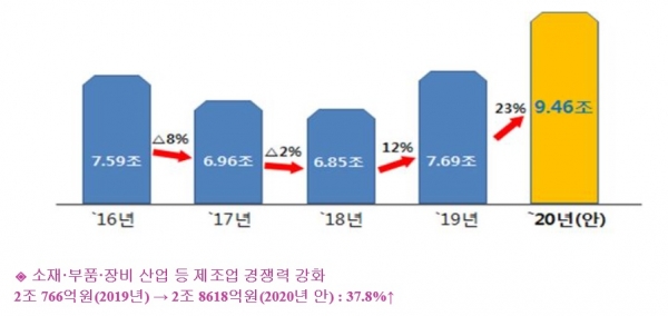 9조4,608억원, 핵심 소재부품장비 산업 예산 2배 증액