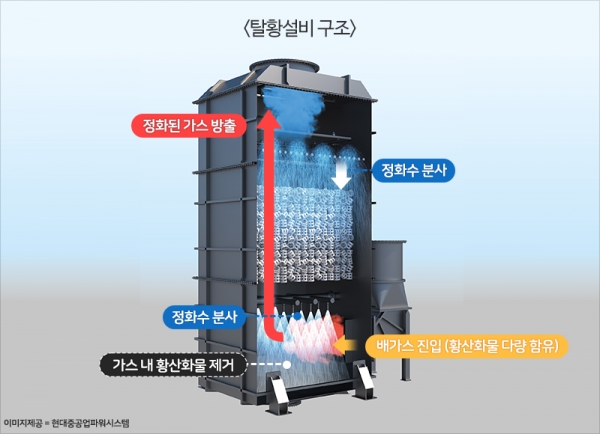 선박용 탈황설비는 벙커유가 연소된 배가스의 황 성분을 90%가량 제거해 대기로 배출되는 황산화물 양을 저감시켜준다. 때문에 기존의 저가 고유황연료유(HSFO, High-Sulphur Fuel Oil)를 계속 사용할 수 있다는 장점이 있다.