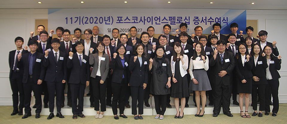 한편 올해로 11년째를 맞은 포스코사이언스펠로십은 현재까지 학문별로 수학 75명, 물리학 81명, 화학 81명, 생명과학 93명, 금속 6명, 신소재 6명, 에너지소재 5명, 과정별로는 박사과정 91명, 포스트닥 66명, 신진교수 190명 등 총 347명 펠로에게 203억을 지원했다.