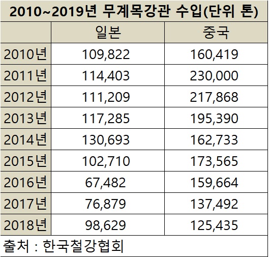 무계목강관 업계는 중국산을 비롯해 일본산, 유럽산을 비롯해 다양한 나라에서 소재를 공급받고 있다. 일본산의 경우 중국 제품 보다 품질이 좋지만 가격적인 부분에서 뒤떨어진다. 아울러 중국 제품도 이전에 비해 품질이 높아져 일본산 제품에 대한 구매가 줄고 있는 것으로 알려졌다.